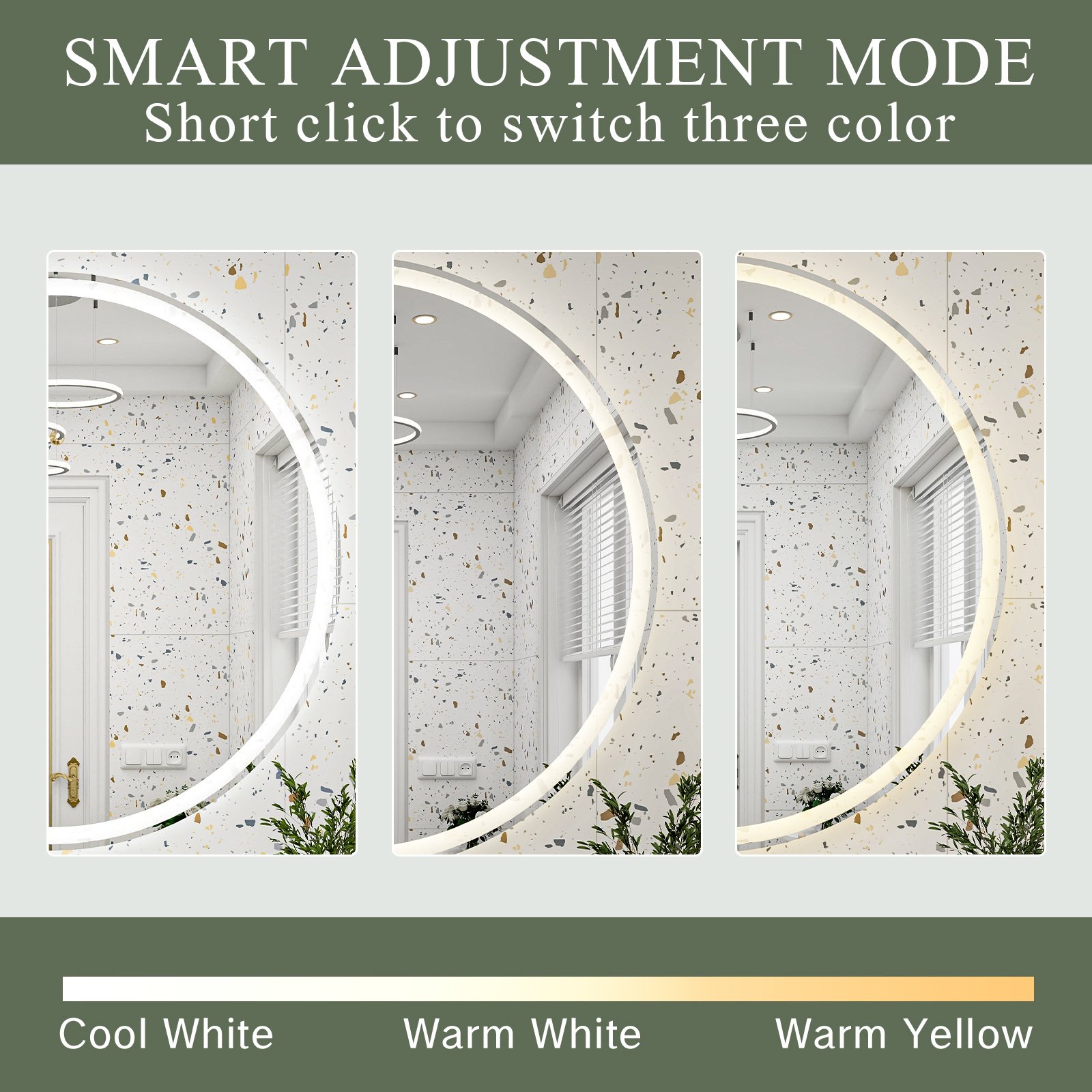 Smooth LED Circular Mirror: This LED circular mirror is a beautiful and practical product. It has a diameter of 20 inches and can be used in dressing rooms, bathrooms, living rooms, entryways, and other settings. Its wall-mounted design saves space and is perfect for decorating your walls.Smart Touch Switch: The touch control function is convenient and easy to use, allowing you to easily adjust the brightness and color temperature of the lights. With just a 3-second touch of the button, the circular LED mirror can go from normal brightness to the brightest setting.High quality: Made with premium materials, including 5mm high-quality glass. It features a high-definition mirror and waterproof LED light strip, as well as splash-proof film protection, ensuring safe illumination in humid bathroom environments.