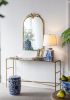 Masterfully capturing the regal charm of classic designs, this decorative mirror boasts a refined gold finish and a large arched frame that is embellished by an alluring adornment at the head.