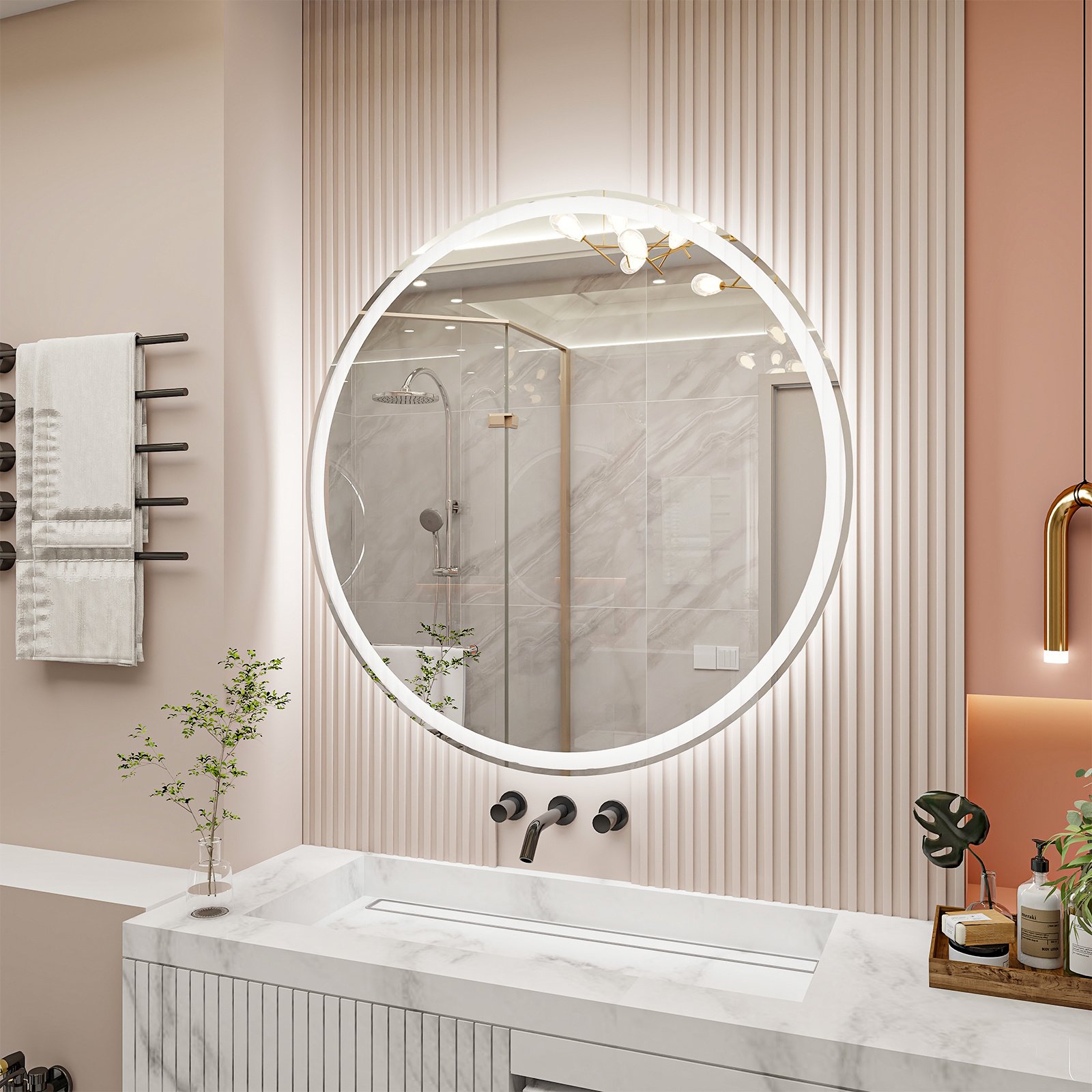 Home > 28 Inch Round Backlit Bathroom Mirror, LED round mirror with lighting strip, waterproof LED strip with adjustable 3-color and dimmable lighting,Touch