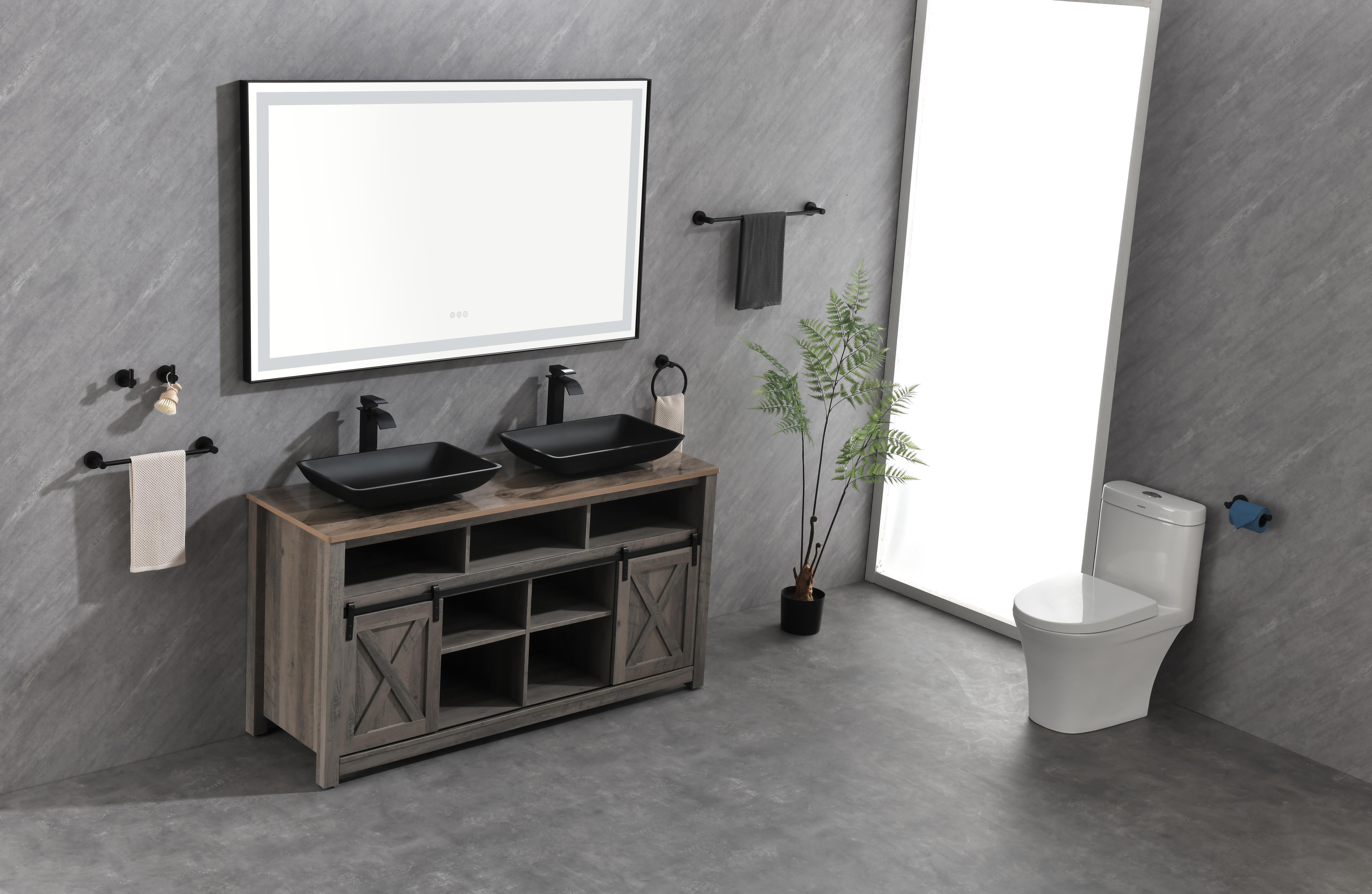 Rectangular Backlit Black Frame Lighted LED Mirror Anti-Fog Wall Mounted Bathroom Vanity Mirror with Lights Large Dimmable Makeup Mirror Home Decor Mirror(Horizontal/Vertical)ECO-FRIENDLY & LONG LIFE OF USE---Copper-free silver mirror with LED lifetime of 50,000 plus hours. The mirror meets standards set by Americans with ETL.Contemporary design light up the whole bathroom with a luxury look that match any bathroom and most vanity.The mirror's night light has a light sensor switch and can also be stopped manually, you do not have to worry about finding the light switch in total LIGHT ADJUSTABLE & ACCURATELY REFLECTION---Color Temperature 3000K(warm)-6500K(cool) switch by a simply tap the touch button. CRI ≥90 and high lumen light will give you 35% more remarkable clarity vs a conventional mirror.ANTI-FOG & ENERGY-SAVING---Defogger turns on automatically ensures the mirror stays clear and fog-free.The anti-fog switch is separate control ensure safe and energy-saving.ANTI-EXPLOSION GLASS & SAFER FOR BATHROOM---The glass of this mirror use anti-explosion glass the whole mirror keeps adhesive state even the glass burst, provide best protection.All electrical parts of the mirror are ETL Listed and IP54 rating ensures safe lighting in humid bathroom environments.Multi-layers of protection provide extra waterproof and quality confidence