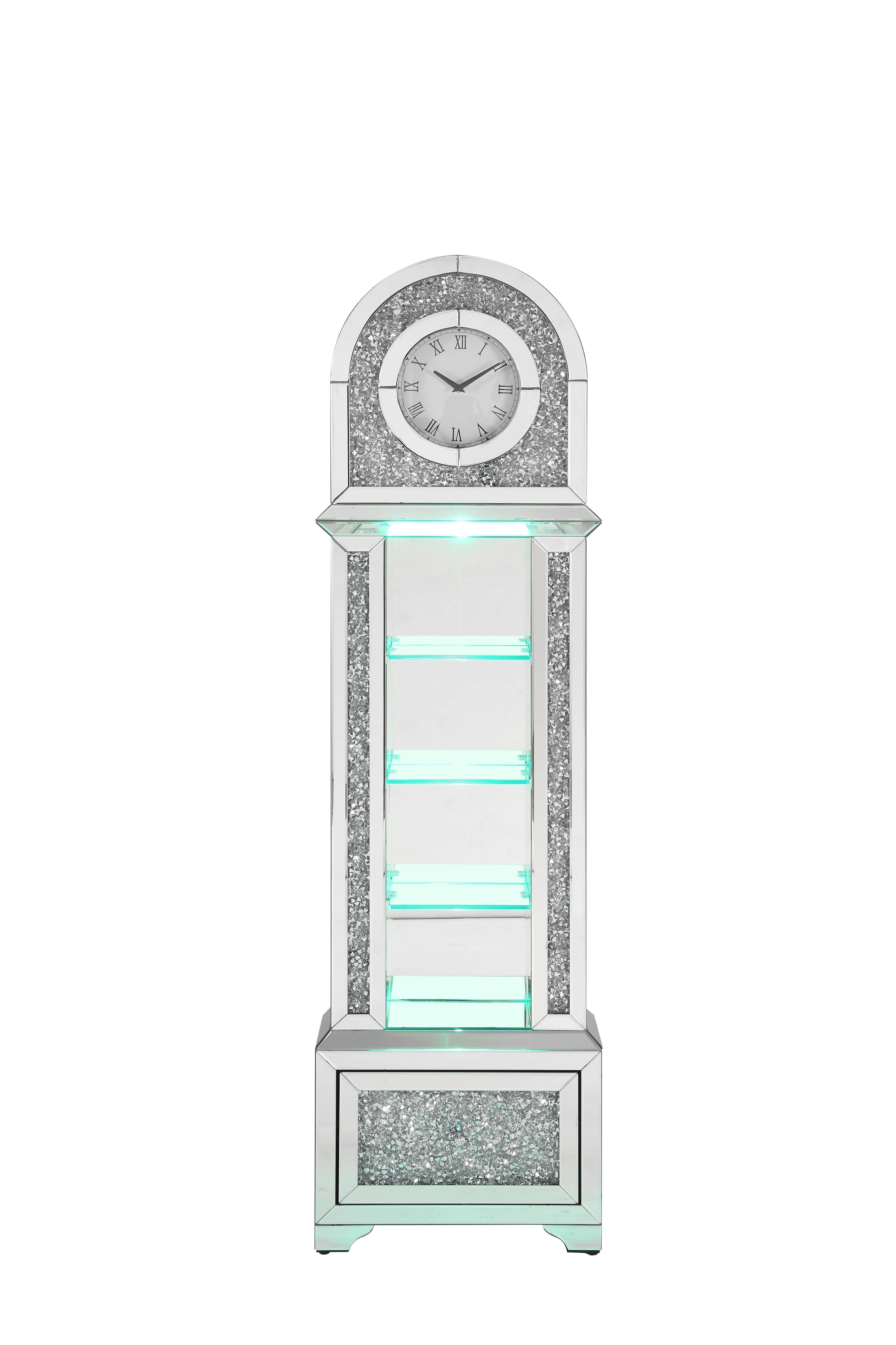 ACME Noralie GRANDFATHER CLOCK W/LED Mirrored & Faux Diamonds AC00353