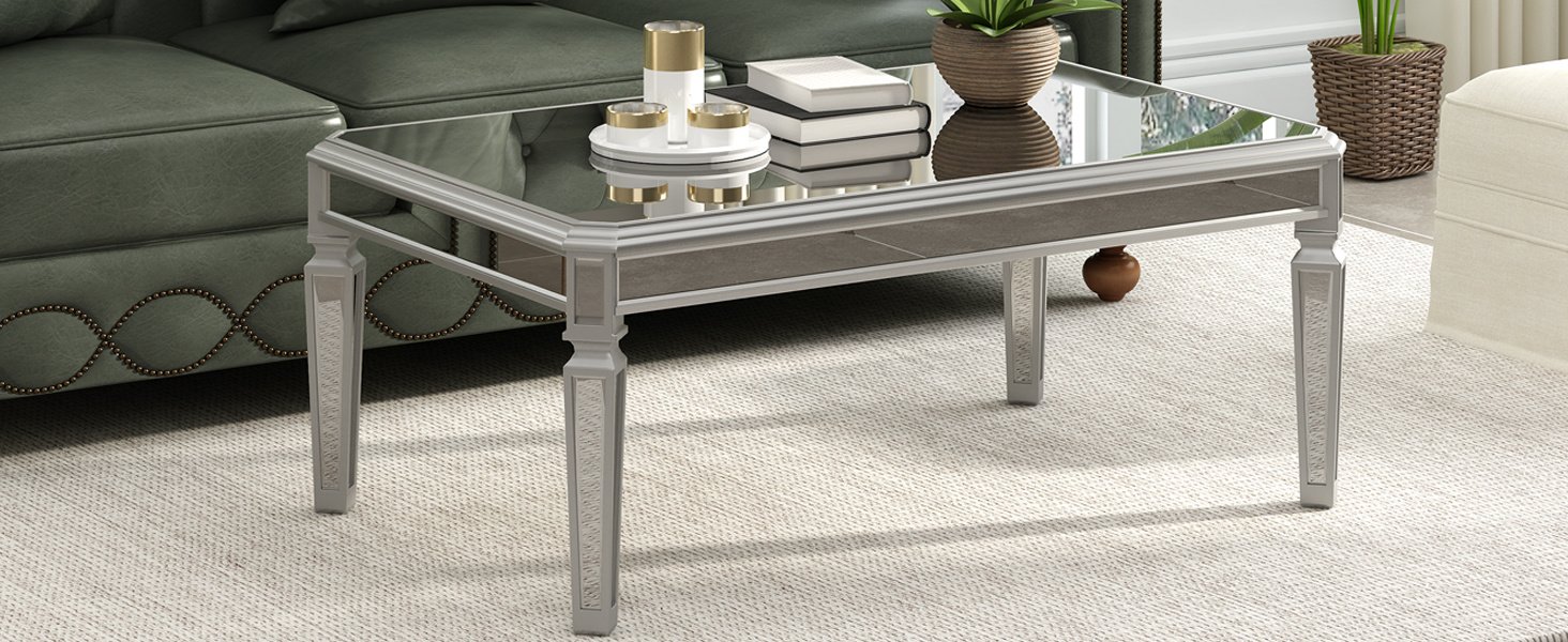 Elegant Mirrored StyleThe silver mirrored coffee table features a luxury design that adds elegance to any living room. The unique reflective effect of the mirrored surface brightens up the room, which will look more spacious and bright.