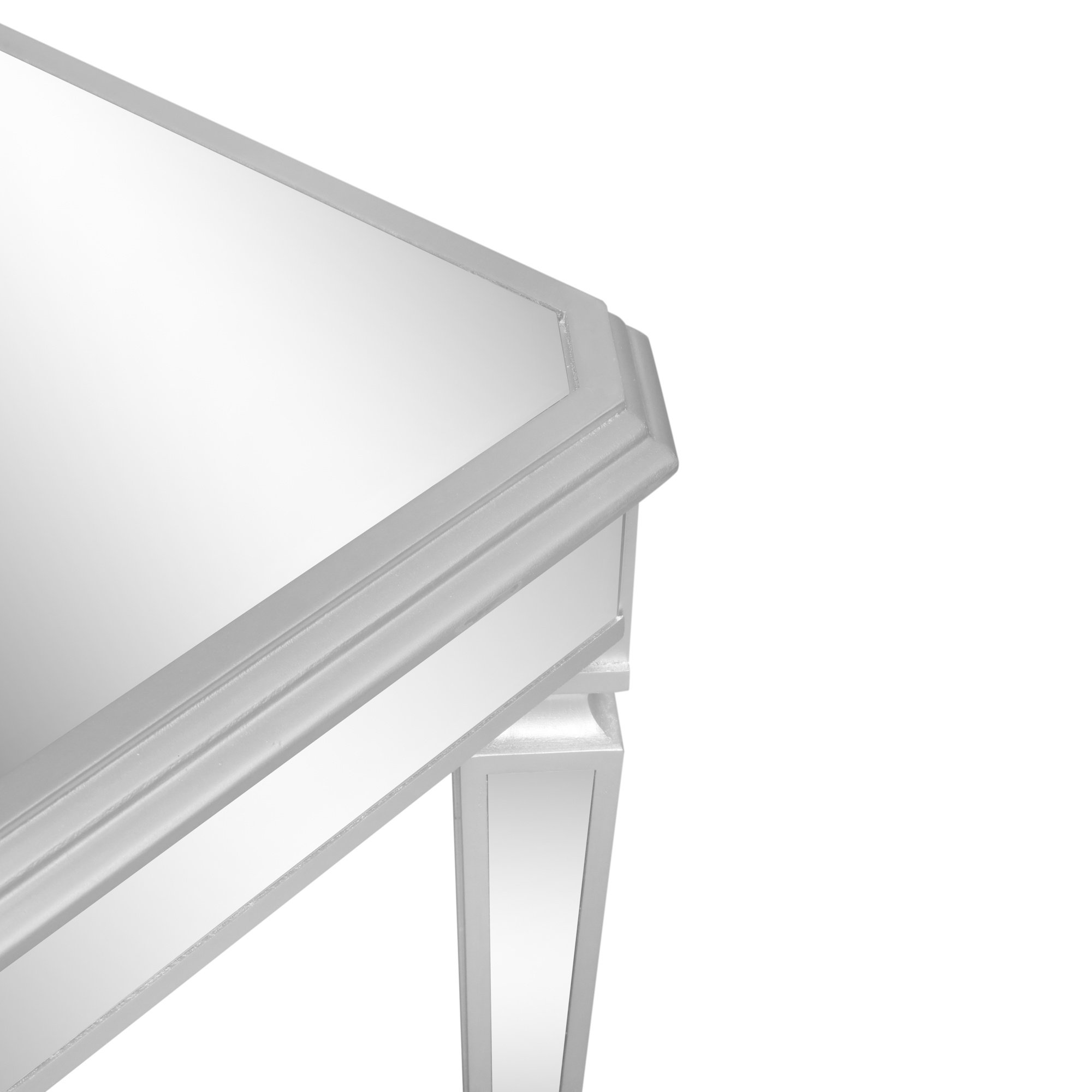 The silver mirrored coffee table features a luxury design that adds elegance to any living room.