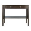 With clean line and contemporary oyster gray finish; the Winsome Wood Stafford Console Table makes a great complement to any decor. As an entryway table; it will welcome you home as a place to keep your keys and briefcase. Or use it in the dining room or living room to show off a lamp; favorite plant; or photos. The console's open shelf and unit-wide drawer offer a wealth of storage options. The mission-style slatted side panels combined with the console's straightforward; contemporary design allow for a seamless blend with any decor. Two beveled silver-finish drawer pulls provide the perfect accent. Coordinate this console table with other furnishings from the Winsome Stafford collection for a cohesive look throughout your home (each sold separately). Solid and composite wood construction for long-lasting integrity. Conveniently packed and shipped in 1 box; that includes the hardware necessary for assembling. Replacement part request can be submitted directly to the manufacturer within 60 days from date of purchase.